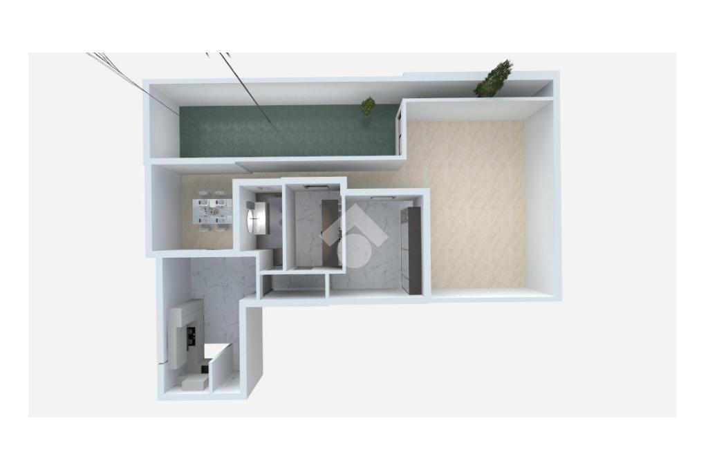 L'immobile è composto da ingresso su luminoso open space con zona living e cucina, due camere da letto e bagno.